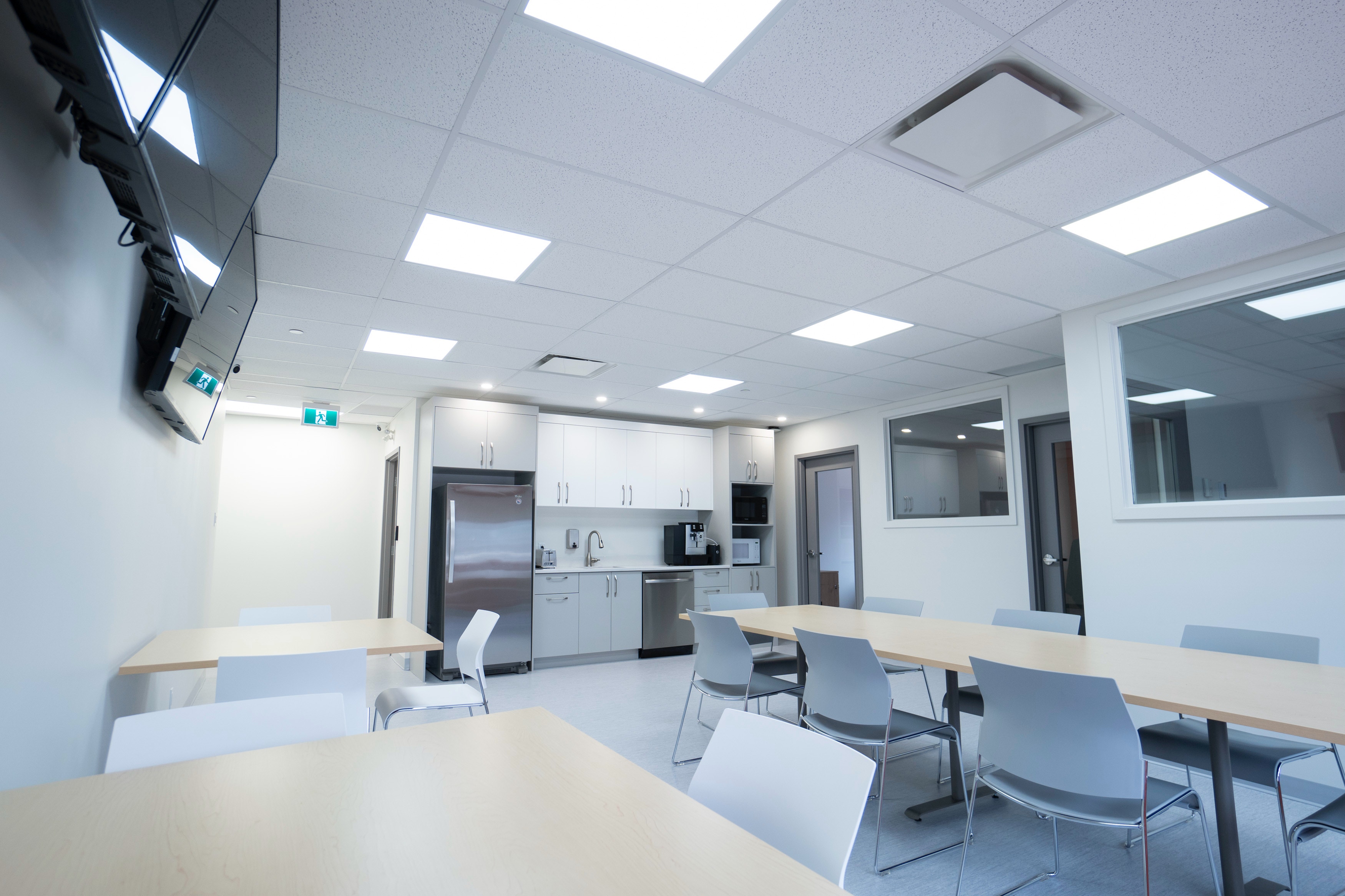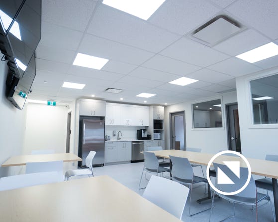 Construction complète des espaces de travail, cuisine et de repos